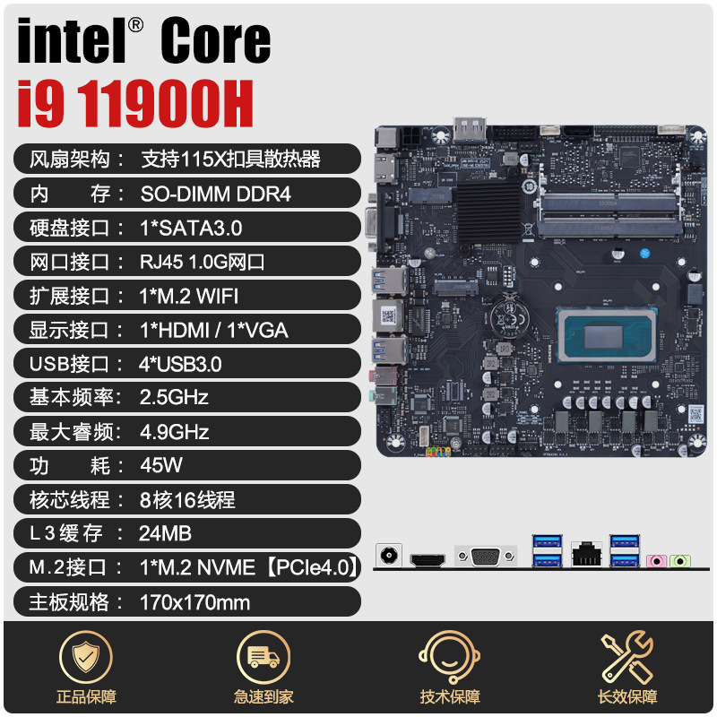 11代酷睿i9 11900H板载CPU套装AIO八核ddr4一体机主板电脑DIY套装