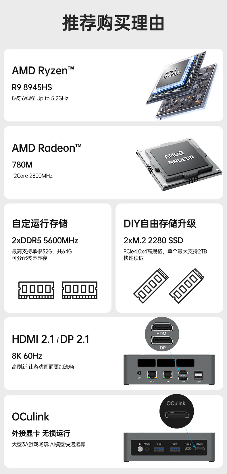 TOPC R7-7840HS迷你主机AMD锐龙8核16线程游戏性价比办公设计静音