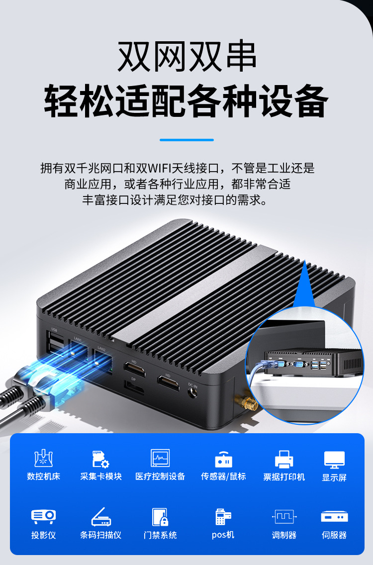 13代迷你主机工控机N150便携式无风扇静音微型工控电脑工业小主机