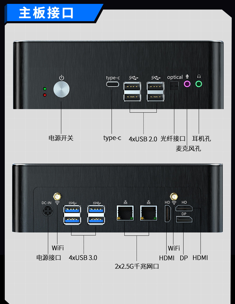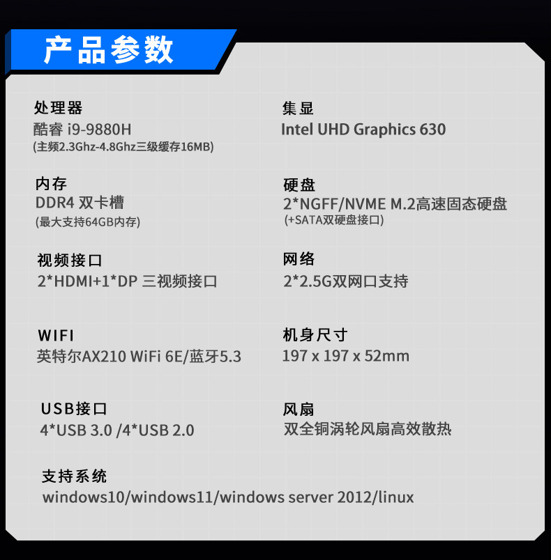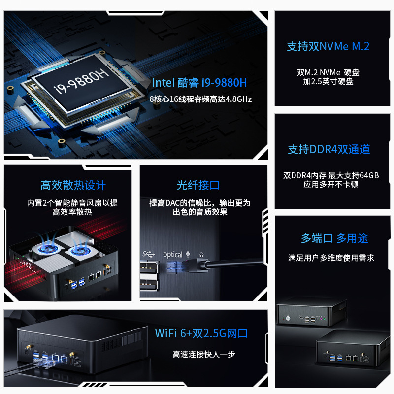 家用电脑迷你主机六核i9-9880H集显直播电竞游戏家用办公minipc