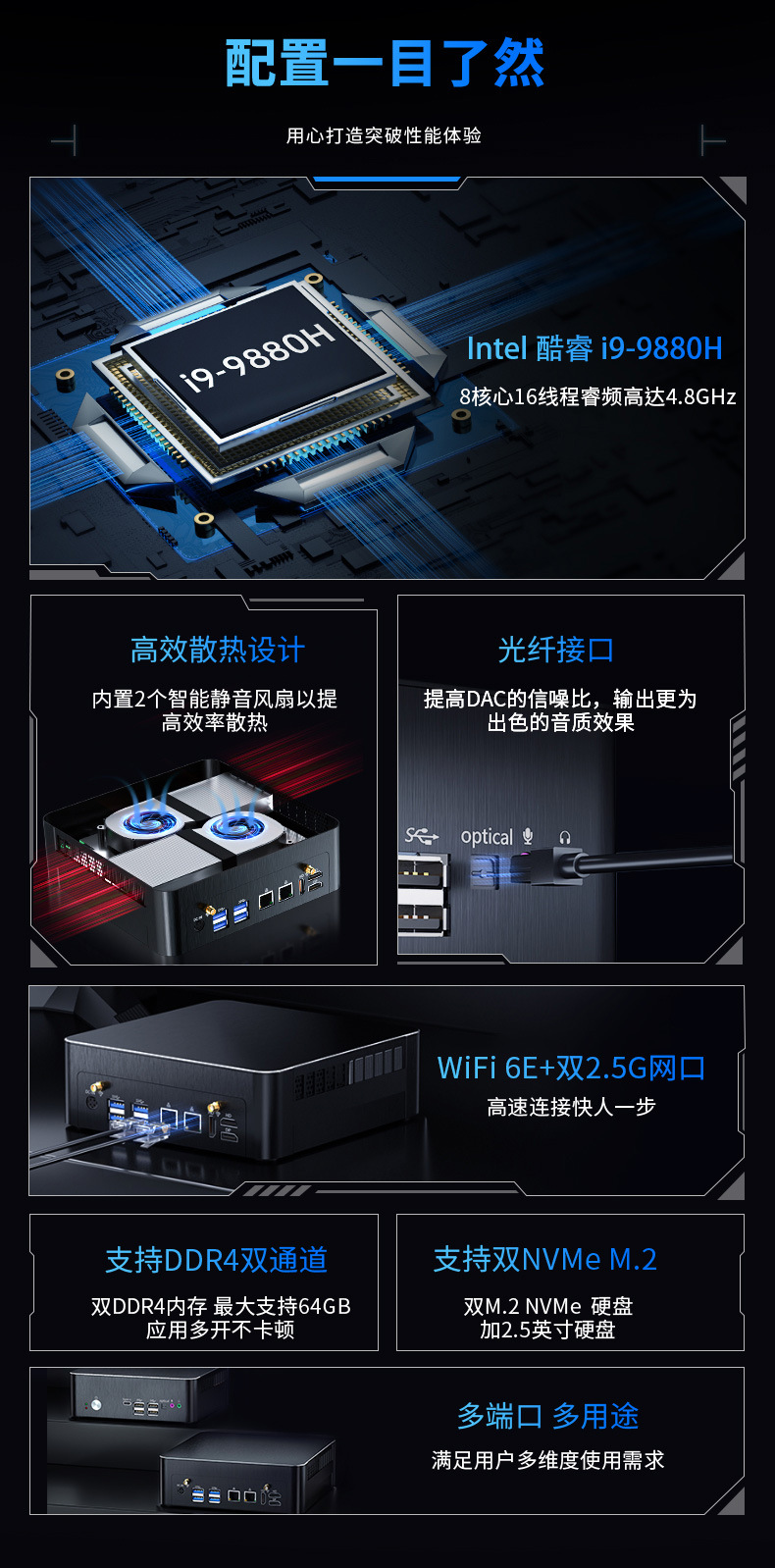 酷睿i9-9880h迷你主机家用办公游戏minipc电脑小主机出口专用