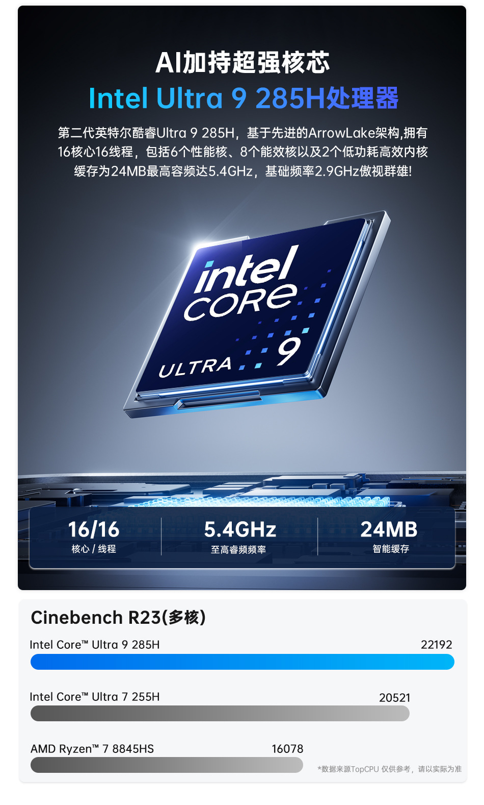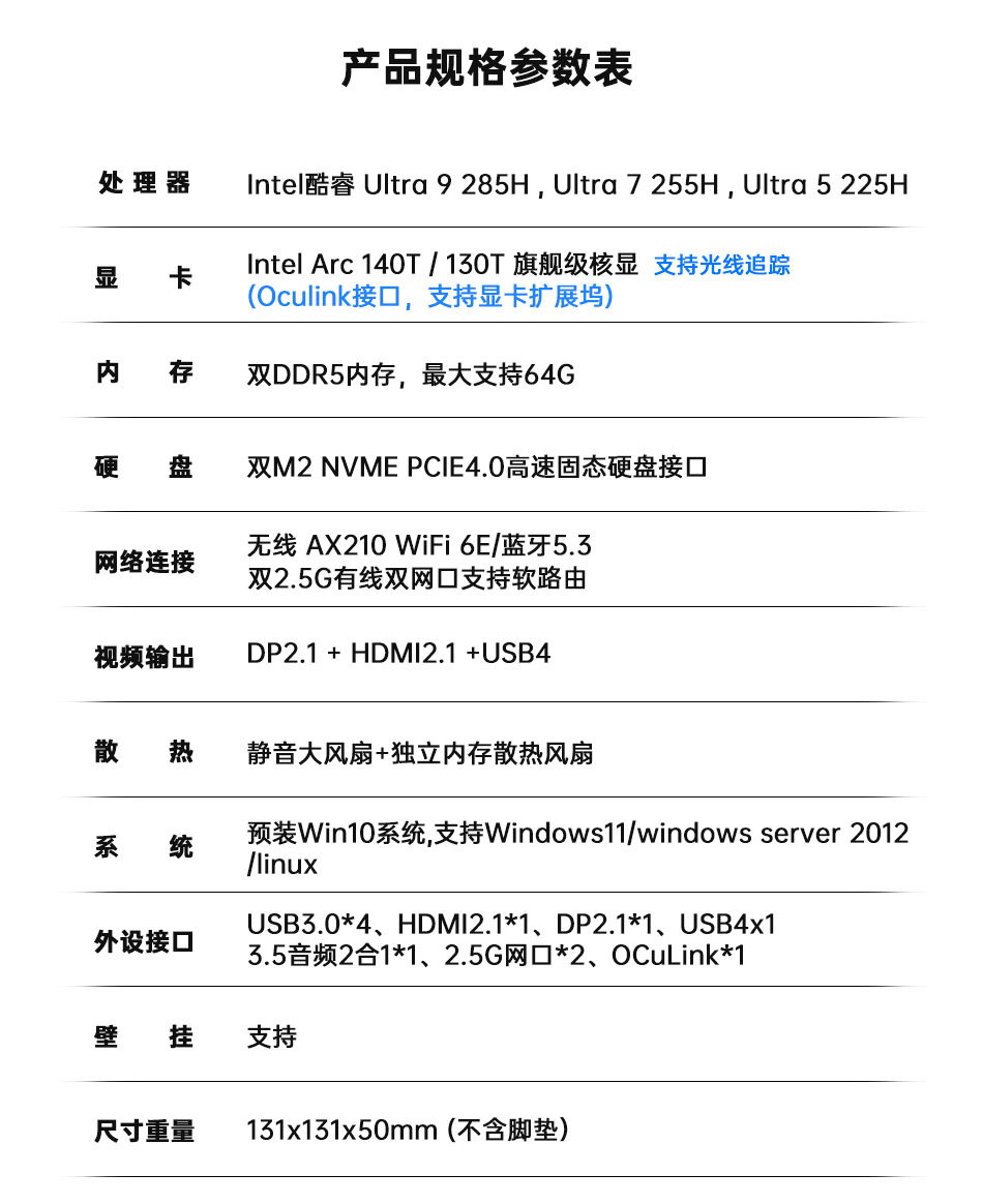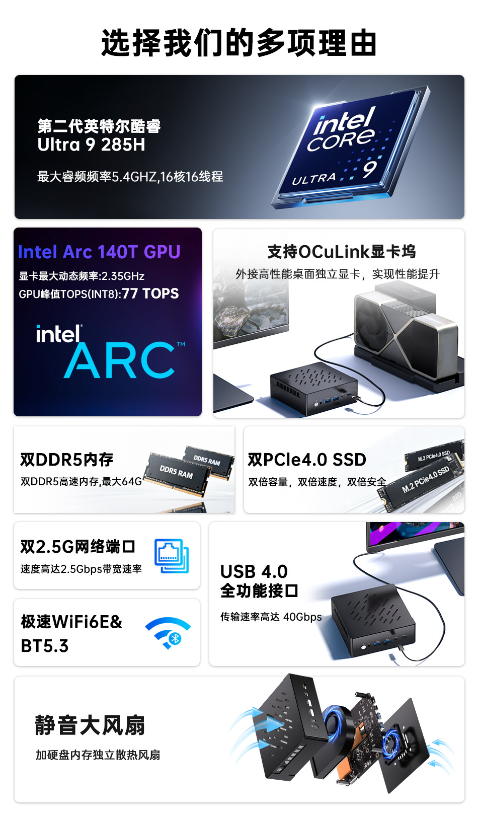 便携Ultra 9 285H迷你主机微型小主机AI算力游戏电脑mini pc批发