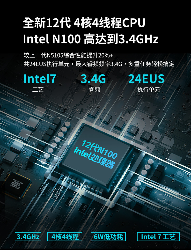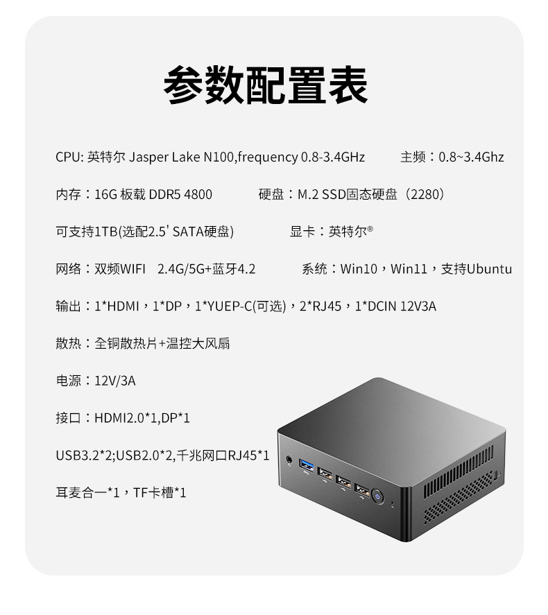 全新12代N100迷你电脑主机4K办公游戏微型电脑家用办公mini pc