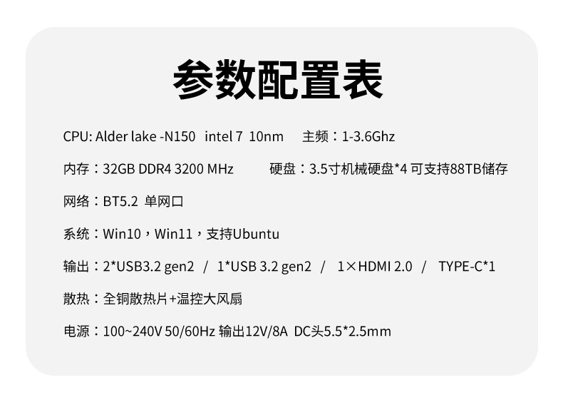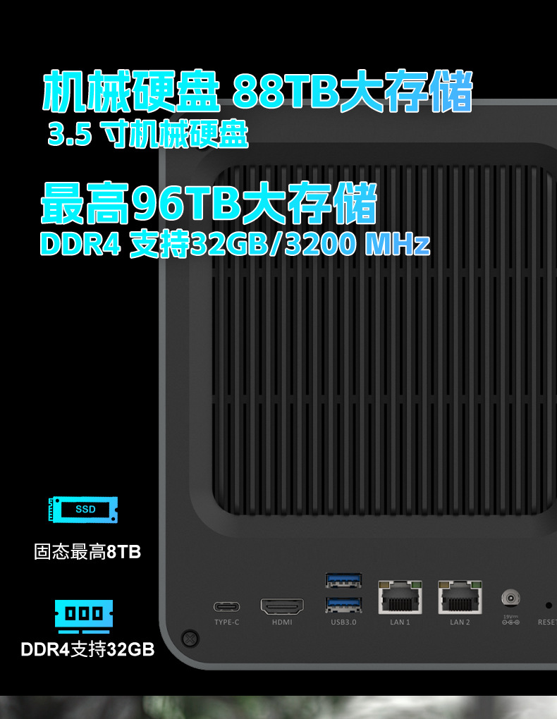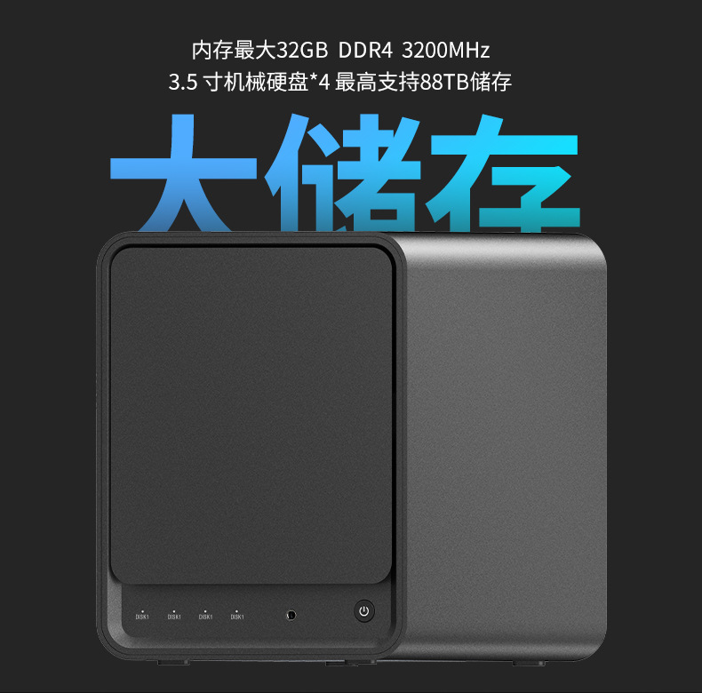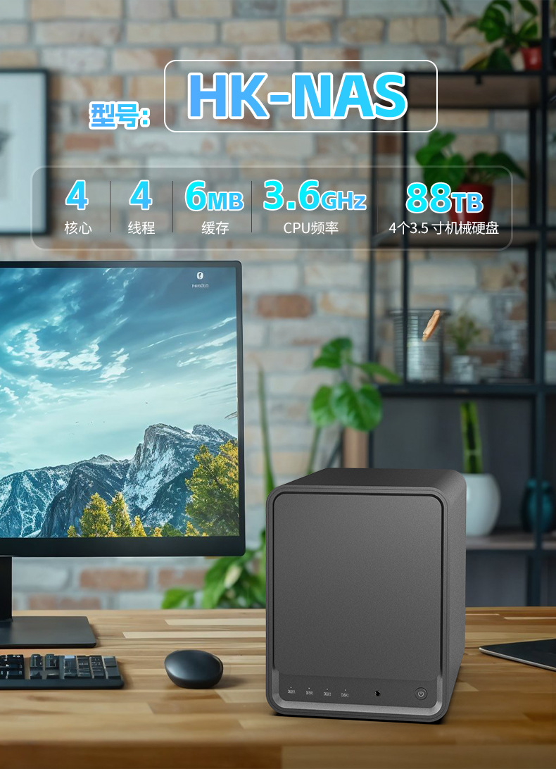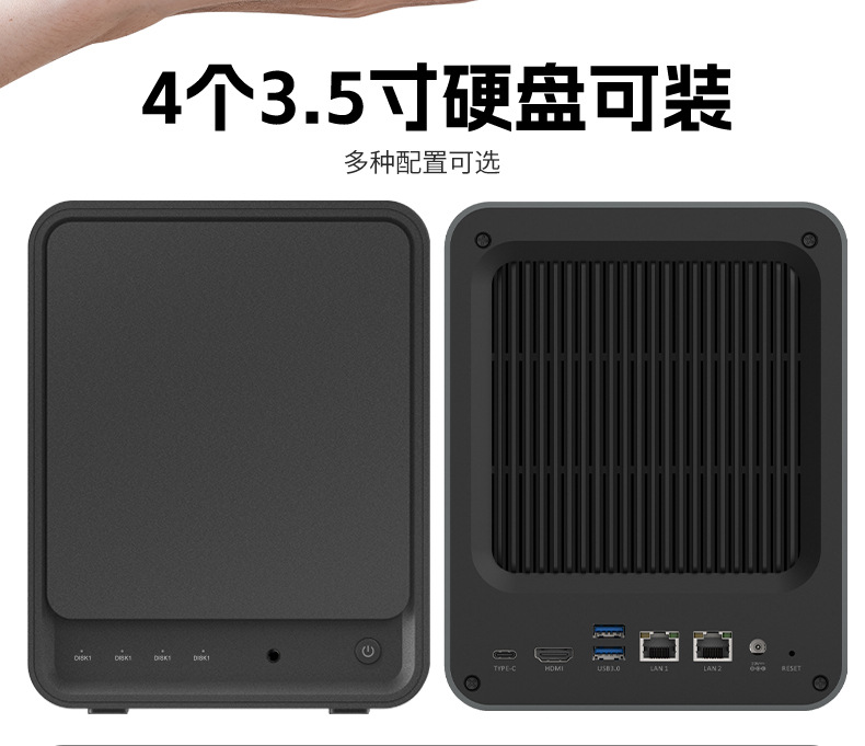 N100新款NAS四盘位大容量双网口私有云家用企业存储RAID支持M.2